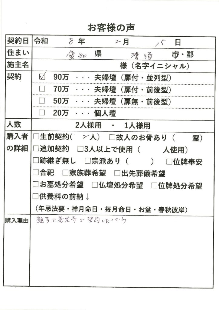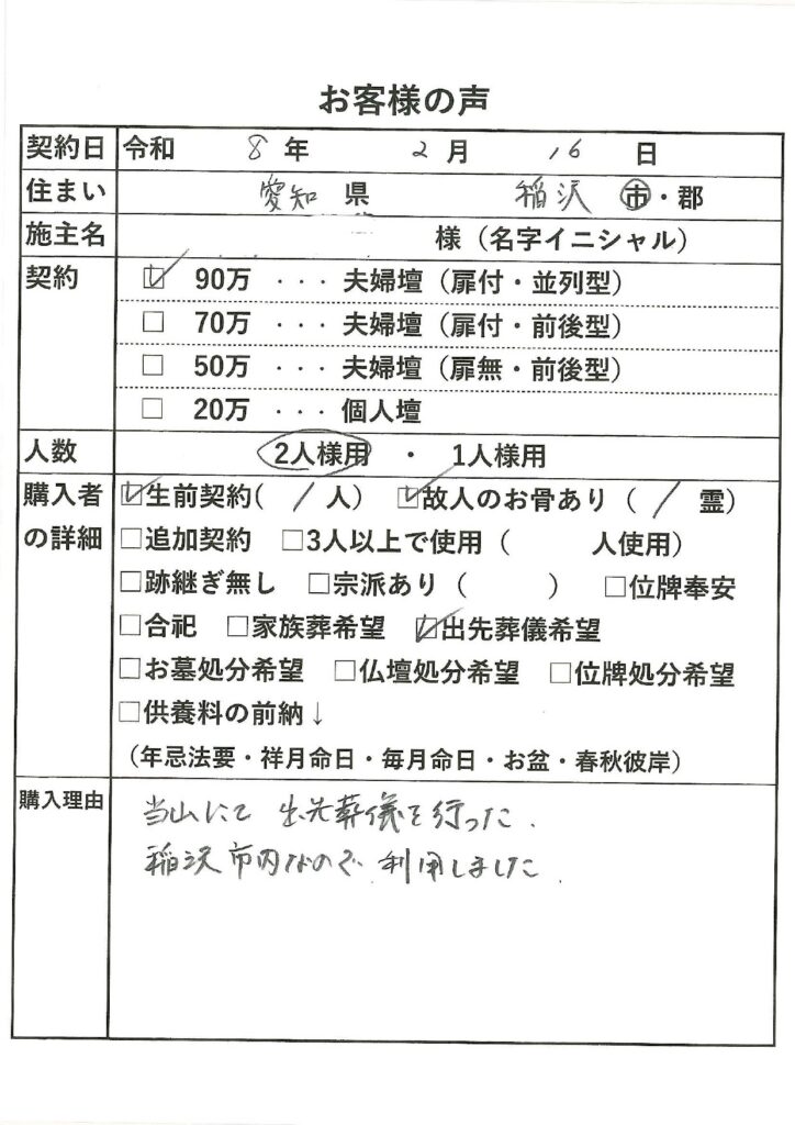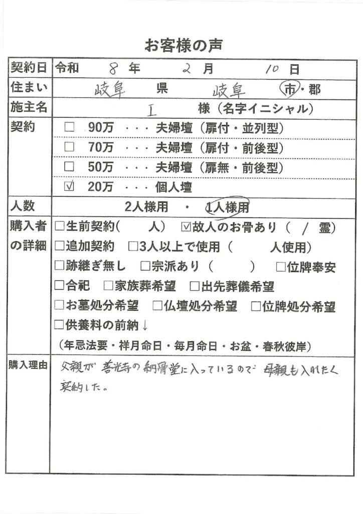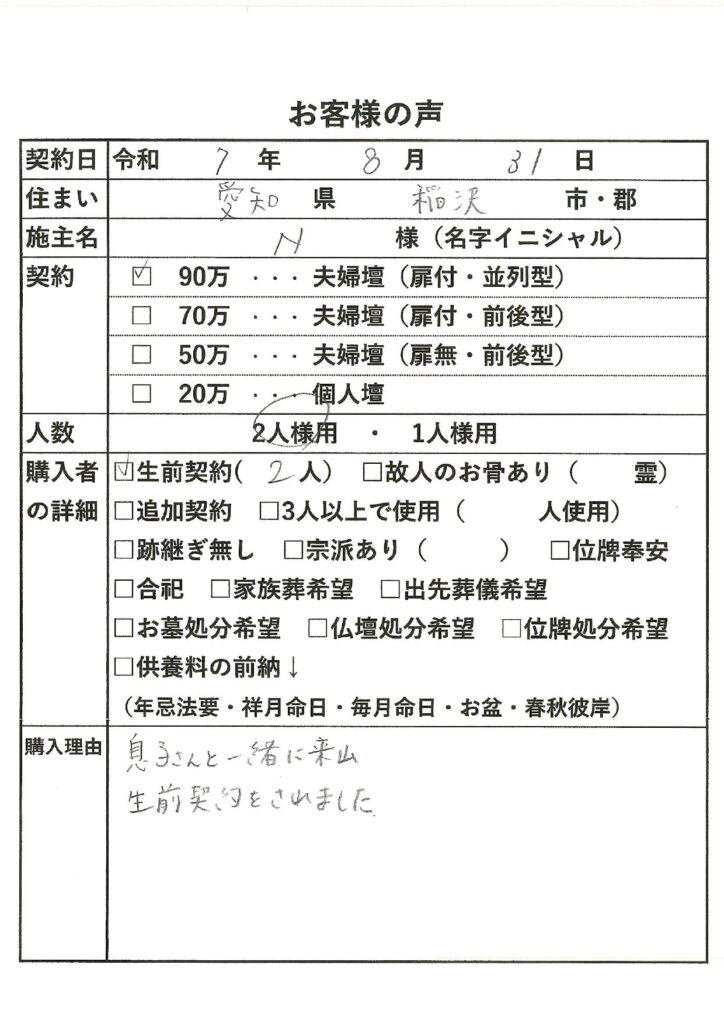 善光寺東海別院にて契約書類にご記入・押印頂きます。(30分程度)