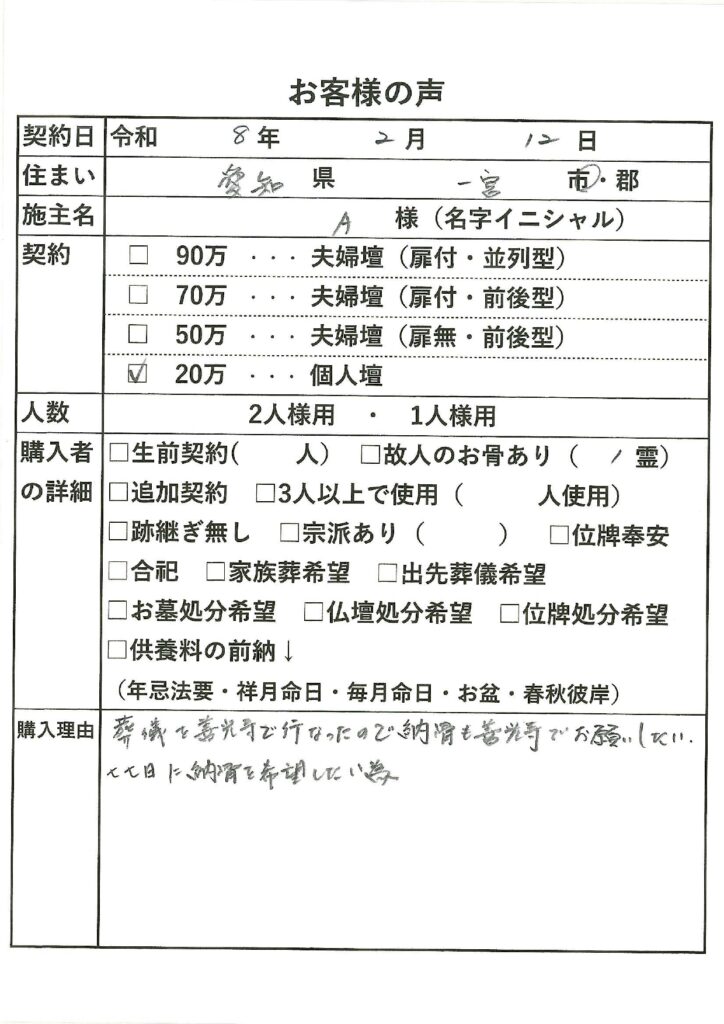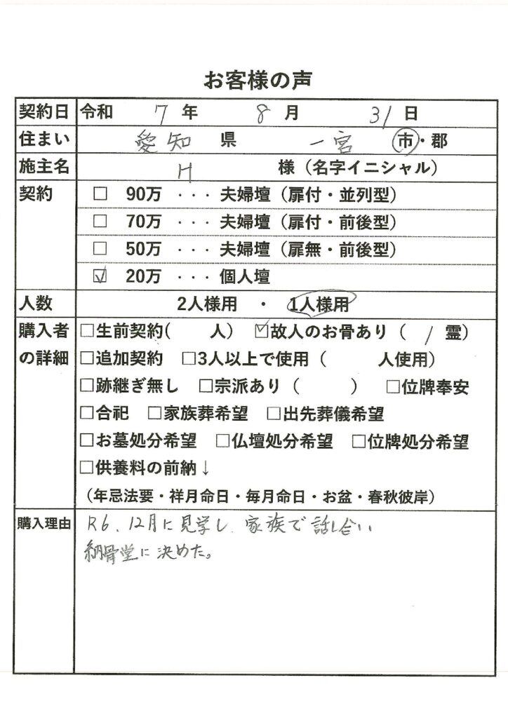 お骨は後日担当職員が納骨堂に納骨致します。(2週間を要します。)