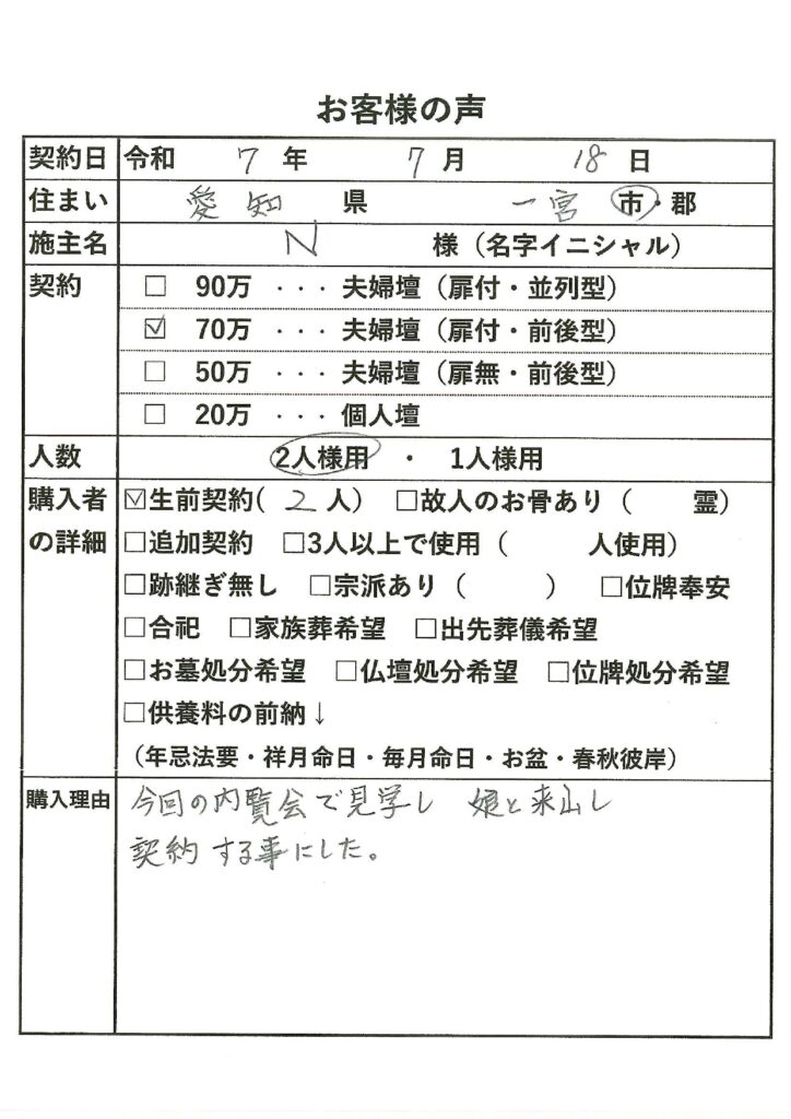 今回の内覧会で見学し、娘と来山し契約する事にした。