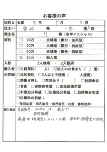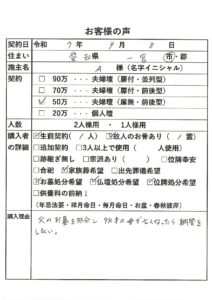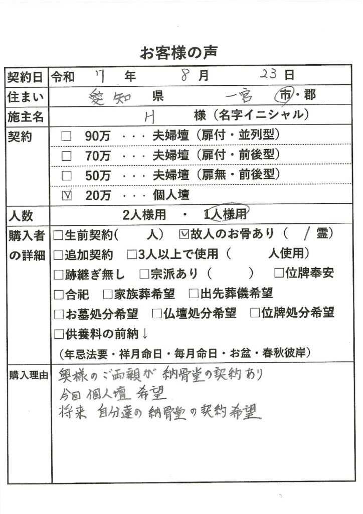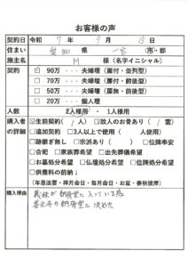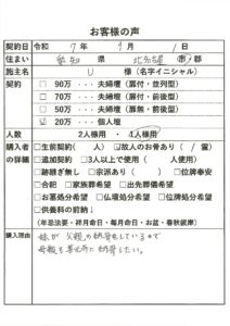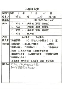 | 購入者の詳細 | 故人のお骨あり(1霊) |