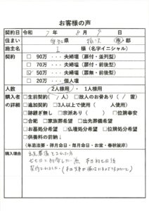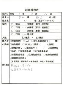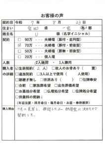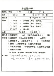 | 購入者の詳細 | 故人のお骨あり(1霊) |