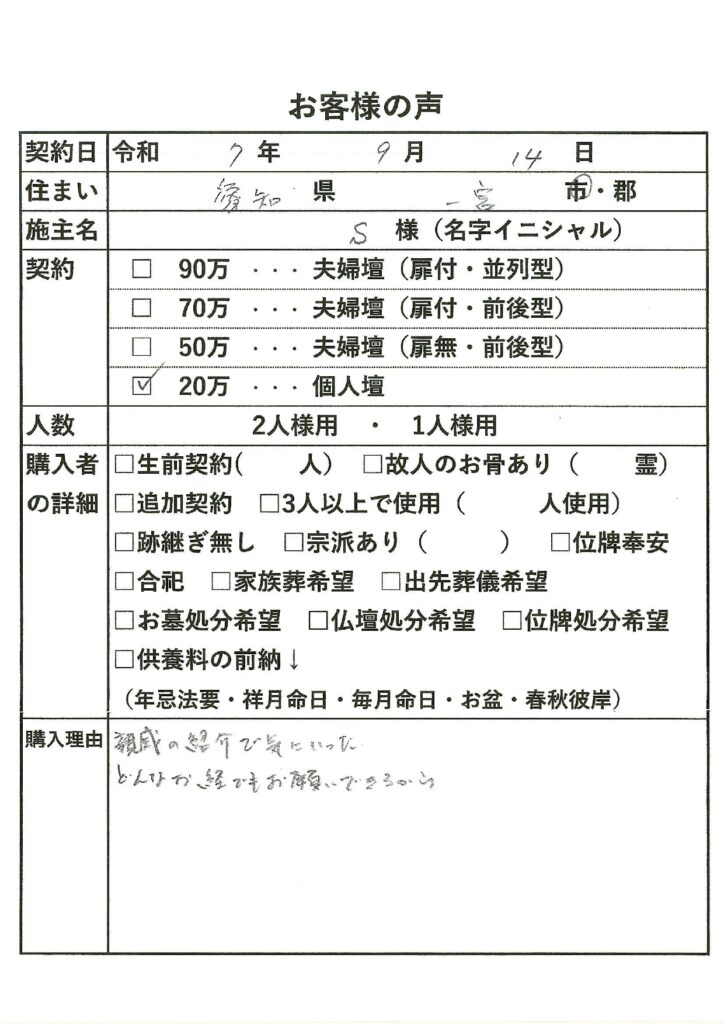 一宮市S様 |お客様の声|善光寺東海別院