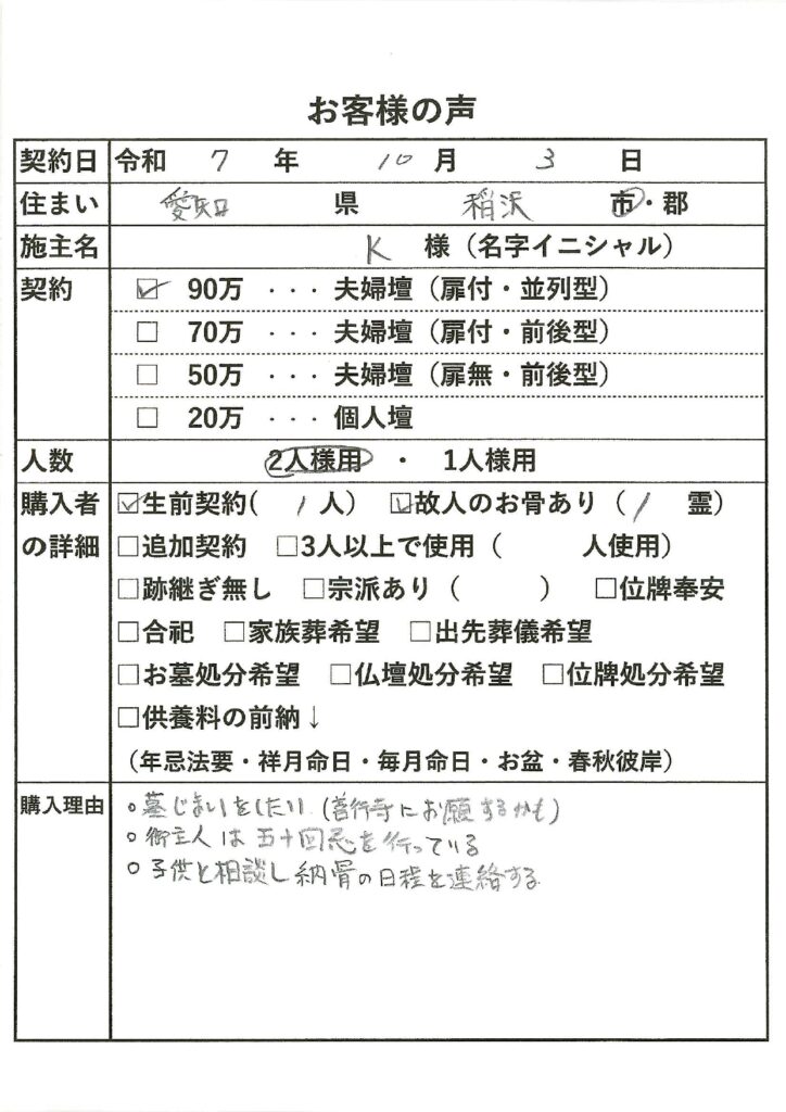 稲沢市K様 |お客様の声|善光寺東海別院